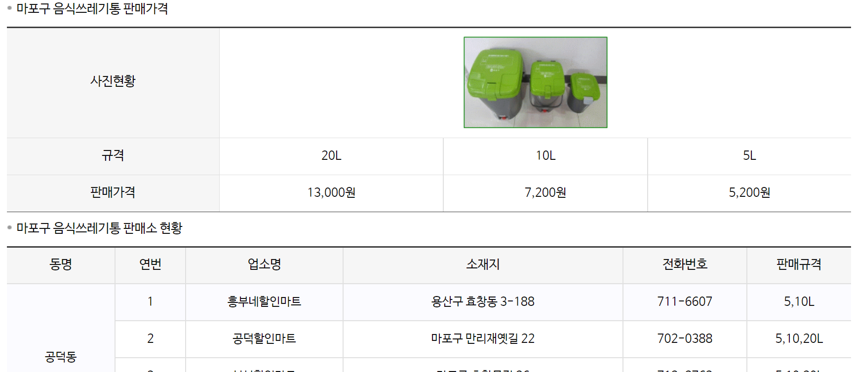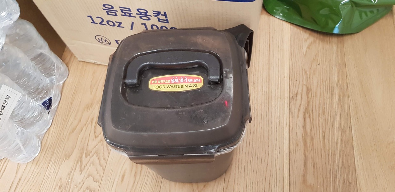 제가 관리하는 곳은 음식쓰레기가 많이 나왔는데 처음에는 이런 음식물 쓰레기통이 없어서 배출하는 것이 힘이 들었습니다. 나중에 음식물쓰레기통을 구매해서 평소에 음식물쓰레기를 종량제봉투에 넣어서 모았다가 가득차면 내어놓고 비워지면 다시 사무실에 가지고 올라가는 방식으로 진행했습니다.