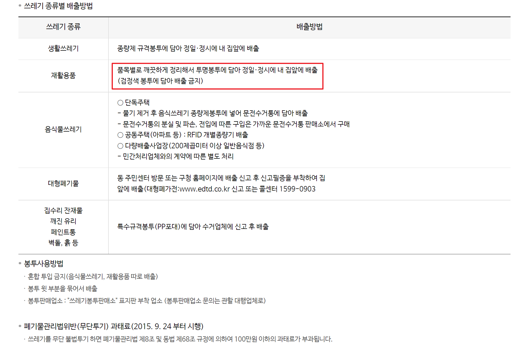 #분리수거요령 #정기청소분리수거 #분리수거배출 #음식쓰레기배출 #종량제봉투배출 #파쇄된종이배출