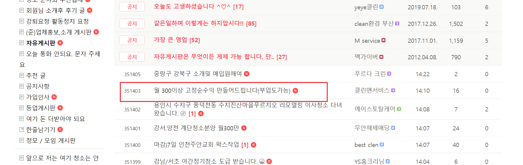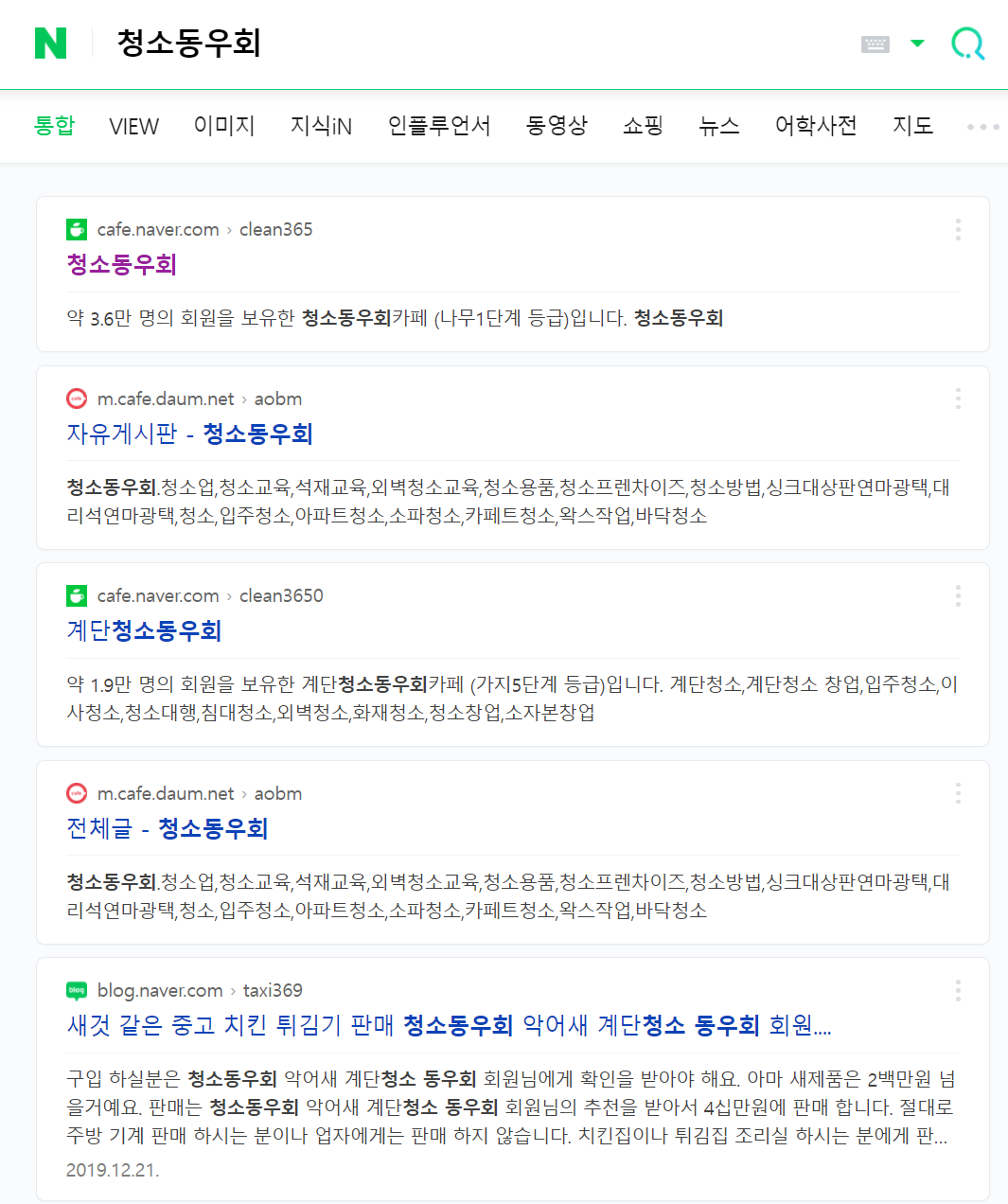 청소를 배우면서 각종 정보를 얻을 수 있는 카페가 있습니다. 네이버에서 청소동우회라는 사이트를 검색해 봅니다.