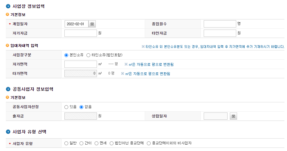자기자금, 타인자본 안 넣어도 됩니다. 종업원수 없습니다.