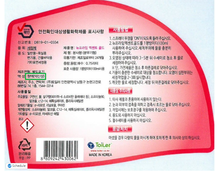 이 제품도 산성입니다. 주의해서 사용하셔야 합니다.